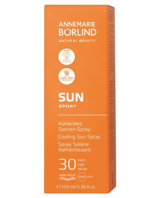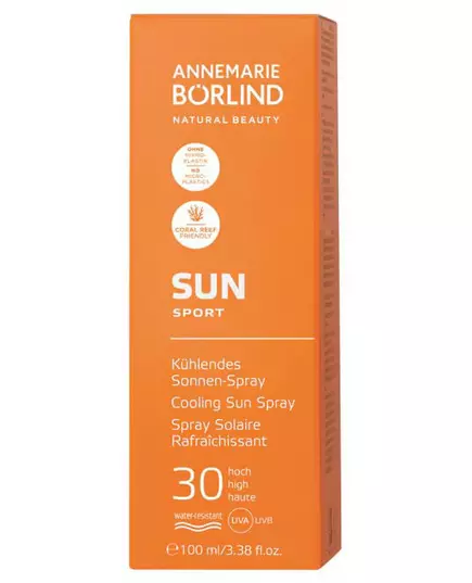 Bli beskyttet og oppfrisket i solen med Annemarie Borlind Sun Sport SPF30 Cooling Spray 100 ml, som gir effektiv solbeskyttelse samtidig som den gir en kjølende følelse på huden.