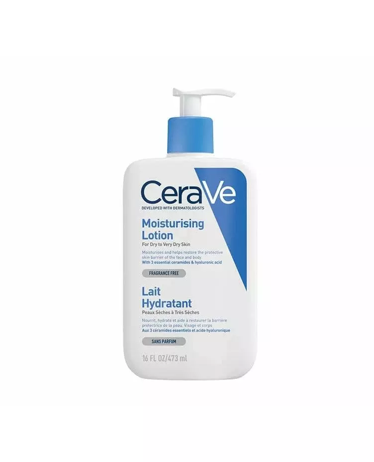 Oppdag CeraVe Moisturising Lotion 473 ml, en fuktighetsgivende lotion som fyller på og opprettholder hudens naturlige fuktbarriere: