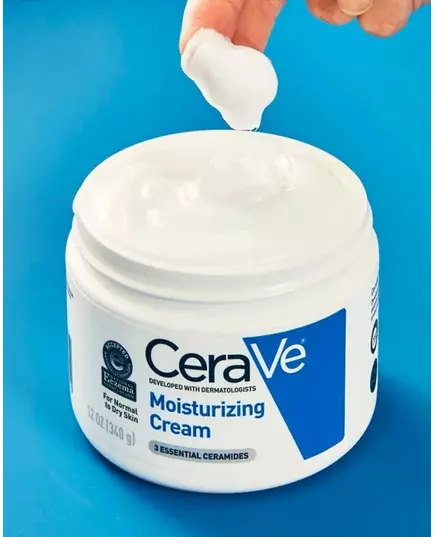 Fukt deg med CeraVe Moisturizing Cream 340 g, en rik formel designet for å fylle på og gi næring til tørr hud: