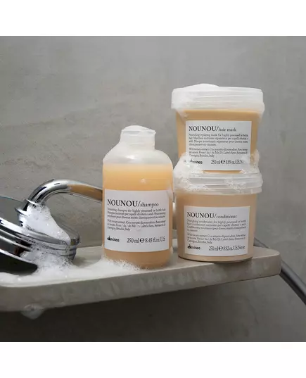 Davines Nounou Shampoo is a nourishing hair cleanser that restores and moisturizes dry, damaged hair, leaving it soft and revitalized.