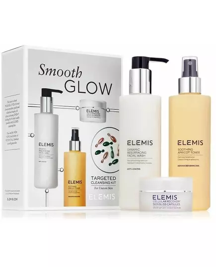 Elemis Smooth Glow Cleansing kit: Elemis Dynamic Resurfacing facial wash 200ml + Elemis Soothing Apricot toner 200ml + Elemis Cellular Recovery Skin Bliss capsules 14 caps