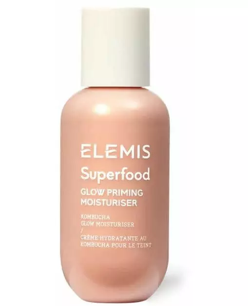 Elemis Superfood Glow Priming Moisturiser is a lightweight moisturizer infused with nutrient-rich superfoods, providing hydration and a natural glow while preparing the skin for makeup application.