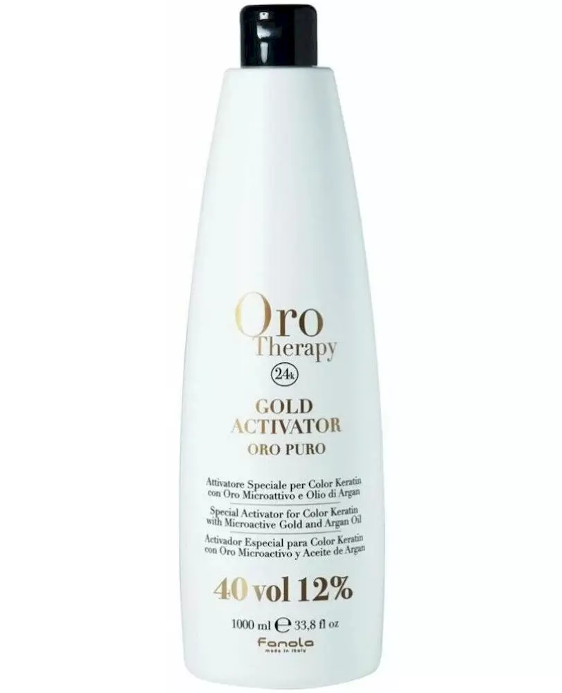 Fanola Oro Therapy Gold 40vol. 12% Activator ensures vibrant, long-lasting color.