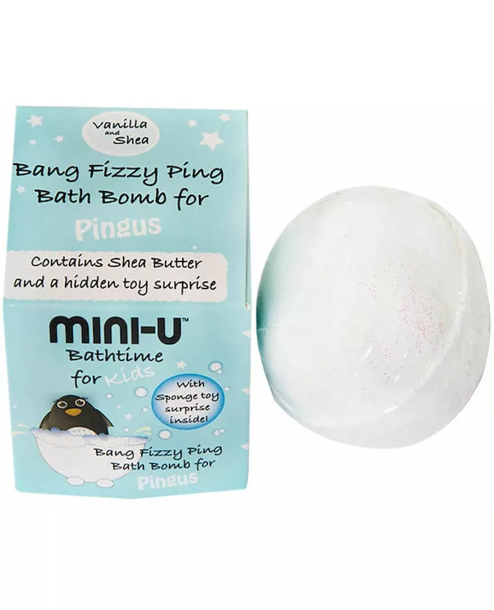 Mini-U Bang Fizzy Pink Bath Bomb in White adds excitement to bath time.