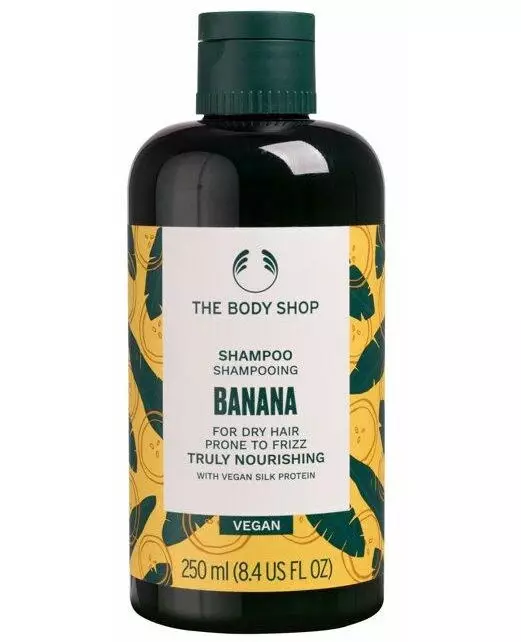 The Body Shop Banana Shampoo is a nourishing shampoo infused with banana puree to gently cleanse and moisturize the hair, leaving it feeling soft and silky.
