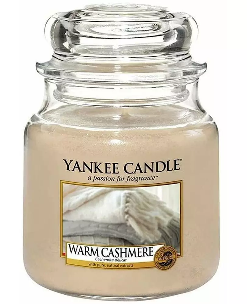 Indulge in the comforting embrace of Yankee Candle Classic Medium Jar Warm Cashmere 411 g:
