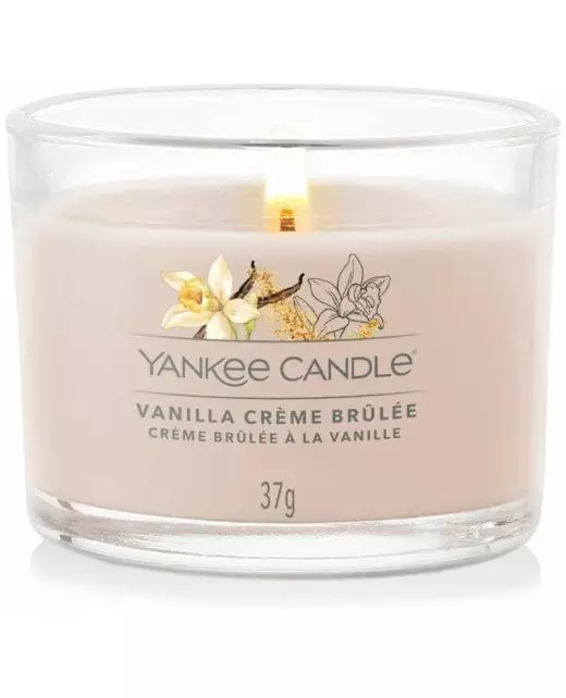 Indulge in the rich aroma of Yankee Candle Filled Votive Vanilla Creme Brulee 3x37 g: