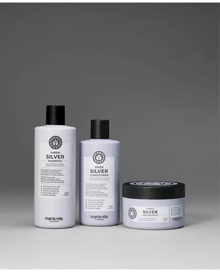 Maria Nila Sheer Silver Conditioner er en nærende balsam som nøytraliserer gule og messingfargede toner i blondt eller grått hår, og etterlater det silkemykt og levende.