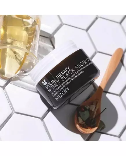 Mizon Honey Black Sugar Scrub er en luksuriøs eksfolierende behandling som kombinerer fordelene med honning og svart sukker for å fjerne urenheter og gi en glattere og mer strålende hud.