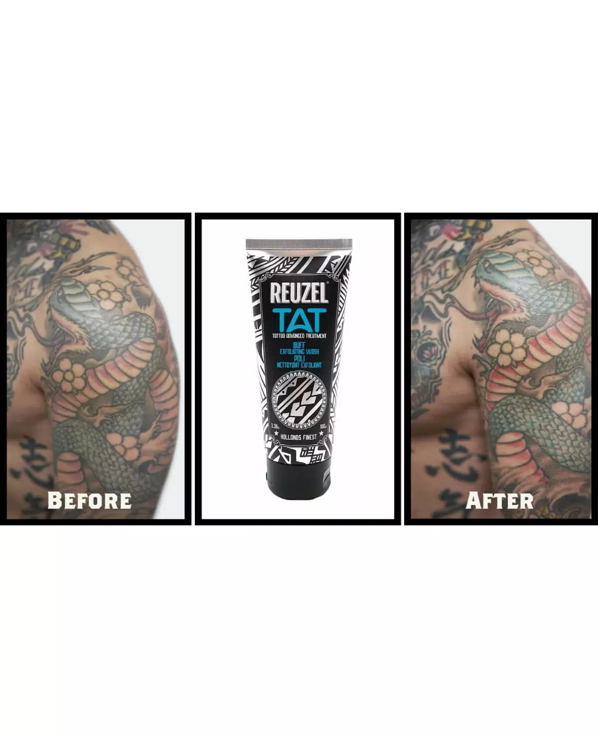 • Eksfolierer skånsomt for å fjerne døde hudceller og urenheter. Fukt huden og skrubb forsiktig på området. Skyll grundig. Følg opp med Reuzel Tat Hydrabalm.