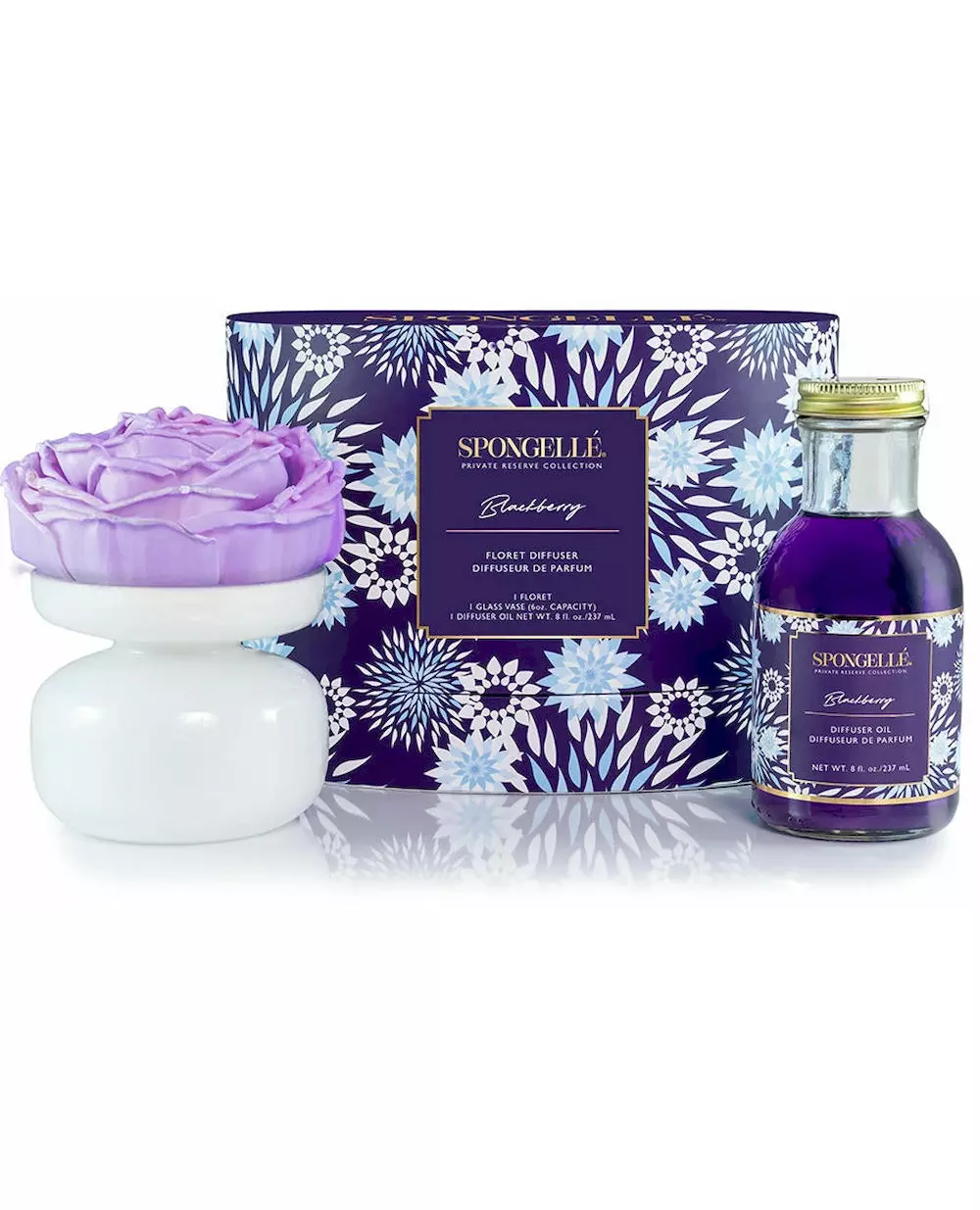 Gavesettet Spongelle Private Reserve Floret Diffuser Blackberry er et luksuriøst duftsett for hjemmet som tilfører eleganse og en herlig duft til ethvert rom.