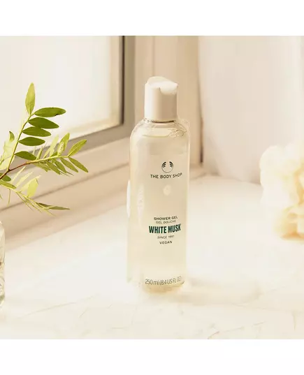 The Body Shop White Musk Shower Gel er en mild og forfriskende kroppsvask som renser huden din mens den omsluttes av den delikate duften av hvit moskus, slik at den føles ren og subtilt duftende.