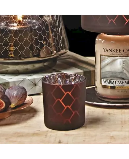 For å lyse opp rommet ditt med Yankee Candle Modern Pinecone Votive Holder Purple, plasser et votivlys inni, tenn det, og nyt den myke, flimrende gløden det gir.